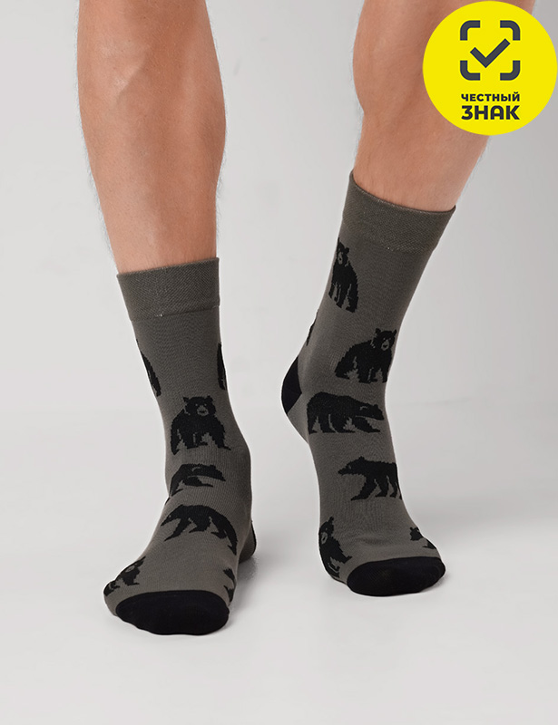 CLE Носки муж.К6601 сувенир хл+эл (хаки; 27-29)