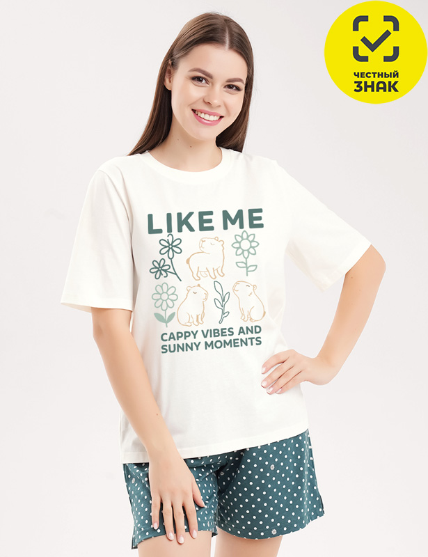 CLE LP26-1225/1 Набор одежды жен. Капибара (молочный/т.зелёный)